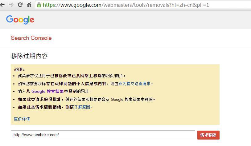 1、打開(kāi)網(wǎng)站 https://www.google.com/webmasters/tools/removals?hl=zh-cn 打不開(kāi)的需要翻墻