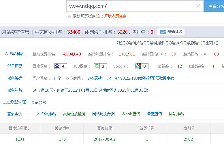 網(wǎng)站主要是買賣QQ號的,聽客戶說之前每天的流量還是很不錯的,降權(quán)之前每天流量都比較固定,但是經(jīng)百度降權(quán)之后,基本上也就是一兩天的時(shí)間,流量就所剩無幾了,因?yàn)榫W(wǎng)站的流量絕大部分都是用戶通過搜索引擎搜索關(guān)鍵詞過來的。搜索引擎這個渠道端了,流量一就隨之消失殆盡了。